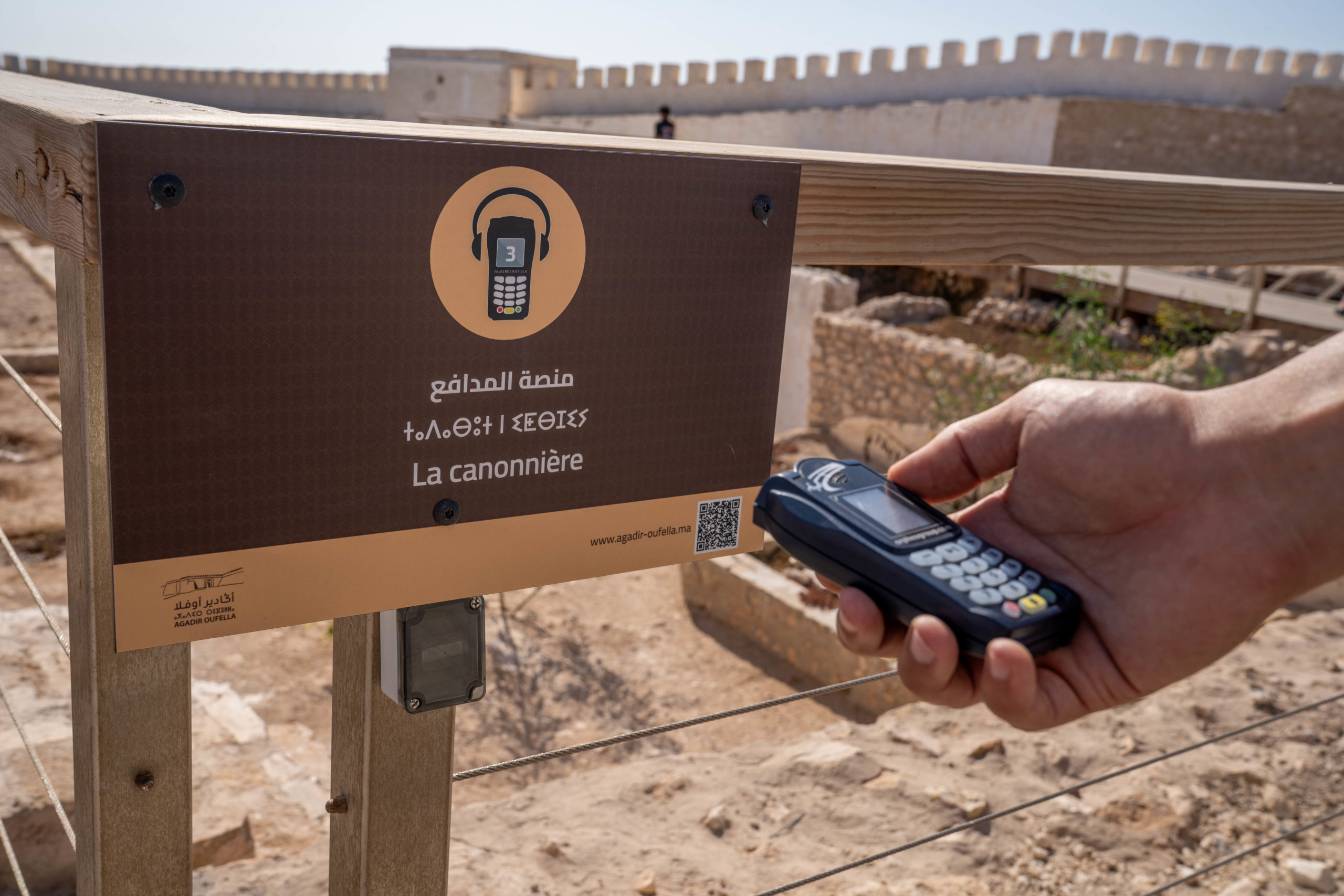 استكشف القصبة مع الدليل الصوتي (متوفرأيضا في تطبيق للهاتف المحمول). تمنحك مسارات الرحلة جميع المفاتيح لفهم الأماكن وتاريخها. يتوفّر الدليل الصوتي باللغات العربية والتاتشيلحيت والفرنسية والإنجليزية والإسبانية.